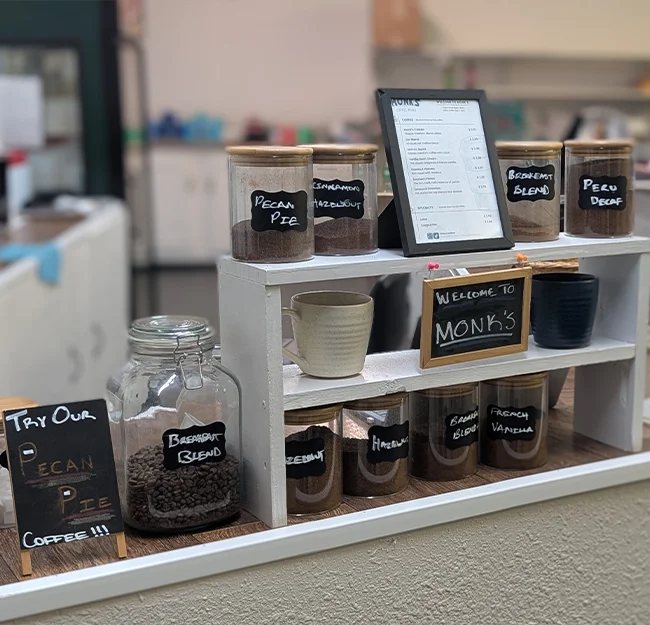 Monk’s Coffee Shop opened in 2023 as a way to honor our grandmother, Ella. Started by one of her grandsons, it’s built on the values she passed down—warmth, care, and the belief that a smile can change a day. When you come in, it’s not just about the coffee. It’s about stepping into a space that feels like family, where every cup is made with the same love Ella showed us.